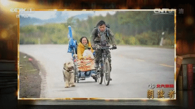 帶著兩只忠狗,一架輪椅,一輛單車,