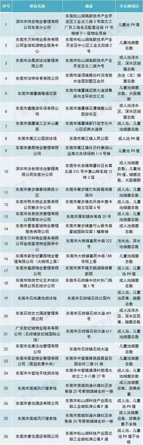 廣東省部分城市游泳場所水質(zhì)抽檢不合格場所名單(第一批)