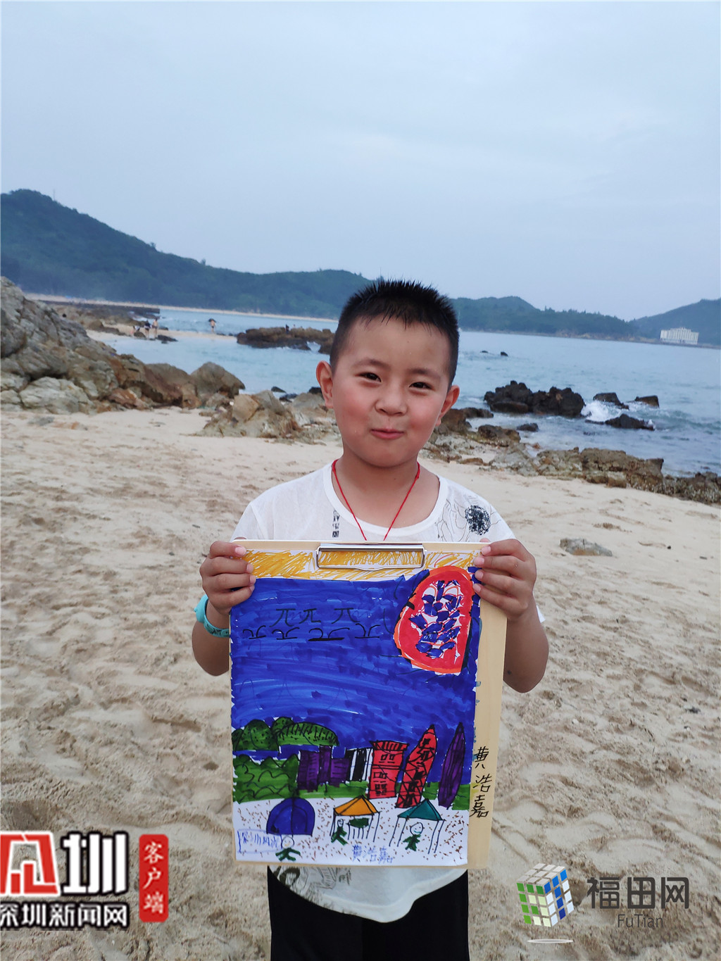 這是我眼中的深圳,既有高樓大廈,也有山和海。我喜歡它,所以我把它畫下來”