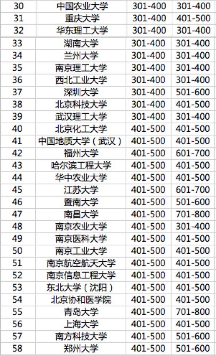 清華大學(xué)在中國內(nèi)地排名最高,位列全球第43名。上海交通大學(xué)的進(jìn)步尤其引人注目,今年首次躋身全球百強(qiáng),位列全球第82位,上海交通大學(xué)也成為繼清華大學(xué)、北京大學(xué)和浙江大學(xué)之后進(jìn)入全球百強(qiáng)的第四所中國大學(xué)。復(fù)旦大學(xué)、華中科技大學(xué)、中山大學(xué)和中國科學(xué)技術(shù)大學(xué)排在全球101-150名。中南大學(xué)、蘇州大學(xué)、東南大學(xué)、電子科技大學(xué)和武漢大學(xué)首次進(jìn)入世界200強(qiáng)。南開大學(xué)、山東大學(xué)、同濟(jì)大學(xué)首次進(jìn)入世界300強(qiáng)。深圳大學(xué)、南方科技大學(xué)、青島大學(xué)、福州大學(xué)、鄭州大學(xué)、南昌大學(xué)、江蘇大學(xué)、暨南大學(xué)今年首次入圍全球500強(qiáng)。上海科技大學(xué)、廣東工業(yè)大學(xué)等13所大學(xué)首次進(jìn)入全球1000強(qiáng)。
