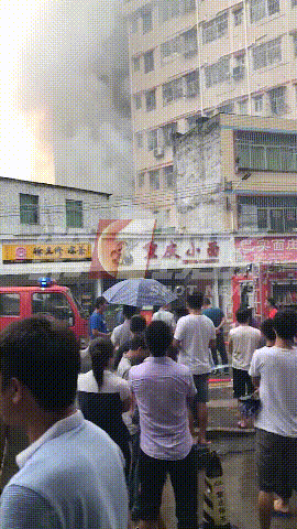 現(xiàn)場冒出的濃煙有數(shù)層樓高