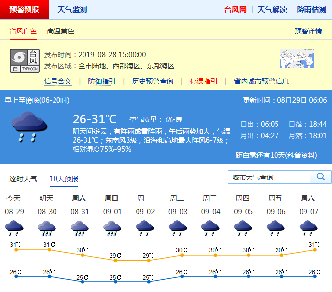 見圳客戶端·深圳新聞網(wǎng)2019年8月29日訊 記者從深圳市氣象臺(tái)獲悉,第12號(hào)臺(tái)風(fēng)“楊柳”(熱帶風(fēng)暴級(jí))預(yù)計(jì)將向偏西方向移動(dòng),趨向海南南部沿海,29日距離我市最近,約500-600公里。市氣象臺(tái)已于28日15時(shí)發(fā)布臺(tái)風(fēng)白色預(yù)警信號(hào)。受“楊柳”外圍環(huán)流影響,預(yù)計(jì)29-30日有間歇性降雨,雨量達(dá)大雨,局部暴雨;本周末至下周中期,天氣不穩(wěn)定,降雨持續(xù)。