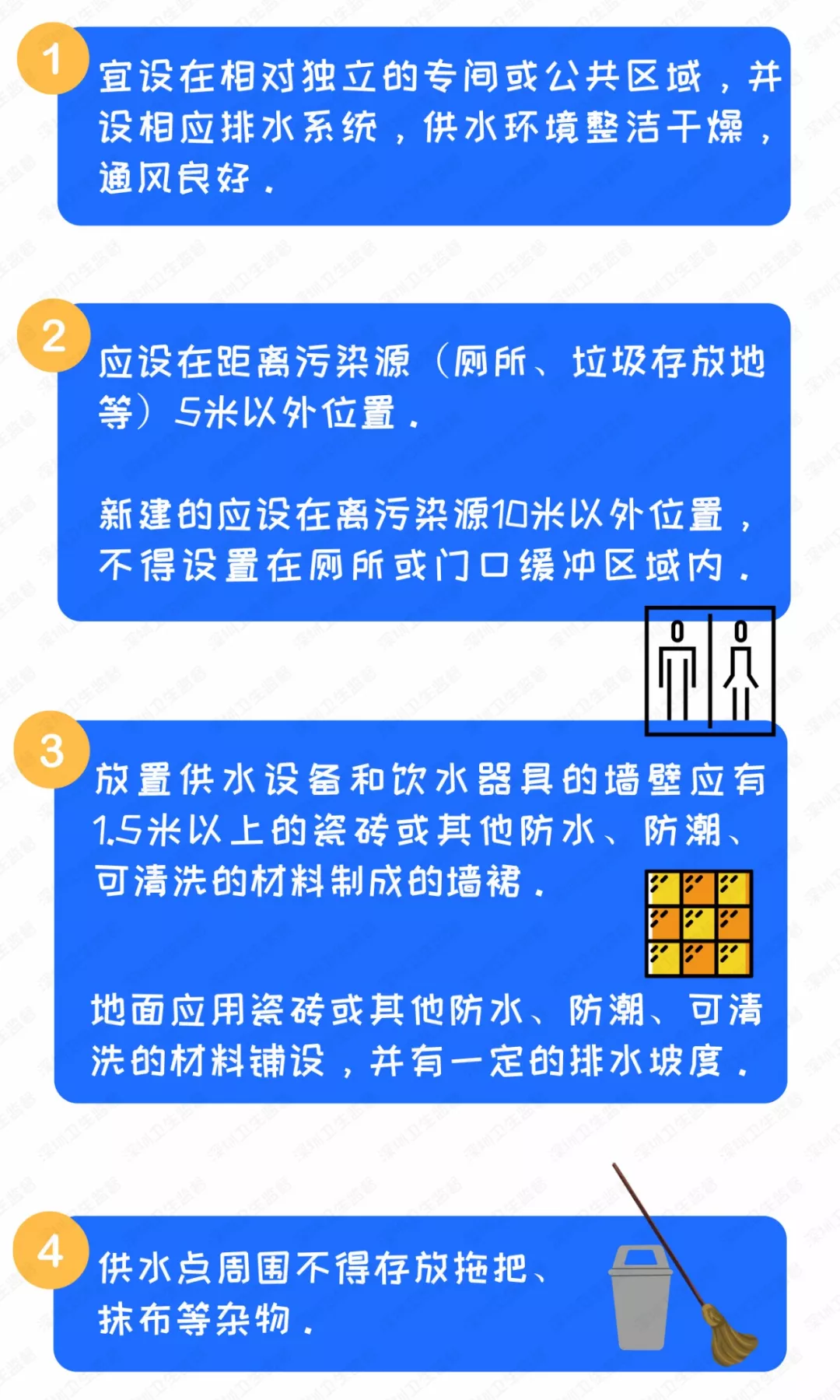 供水點指經(jīng)各種供水設(shè)備處理后可供師生直接飲用的產(chǎn)品水出水設(shè)備(水嘴)的存放地方。