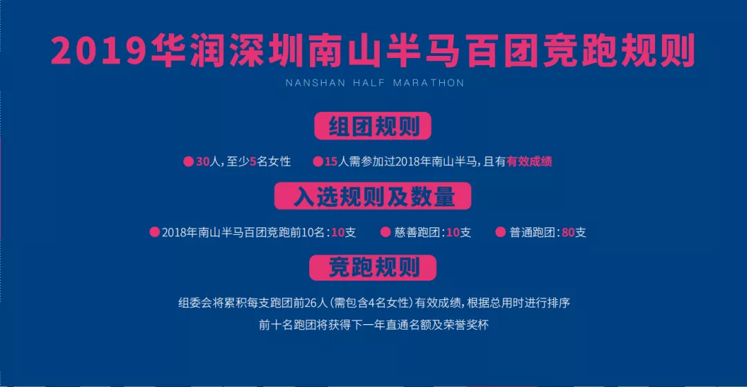 注:30名跑團團員中,至少有15人及以上人數參加過2018華潤深圳南山半程馬拉松賽,否則不予以排名入選資格