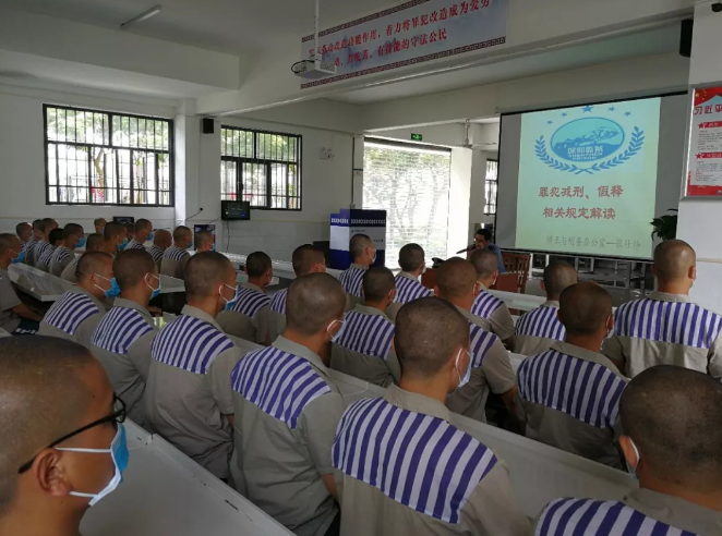 特殊園丁給學員講解減刑假釋的法律法規(guī)等內容。