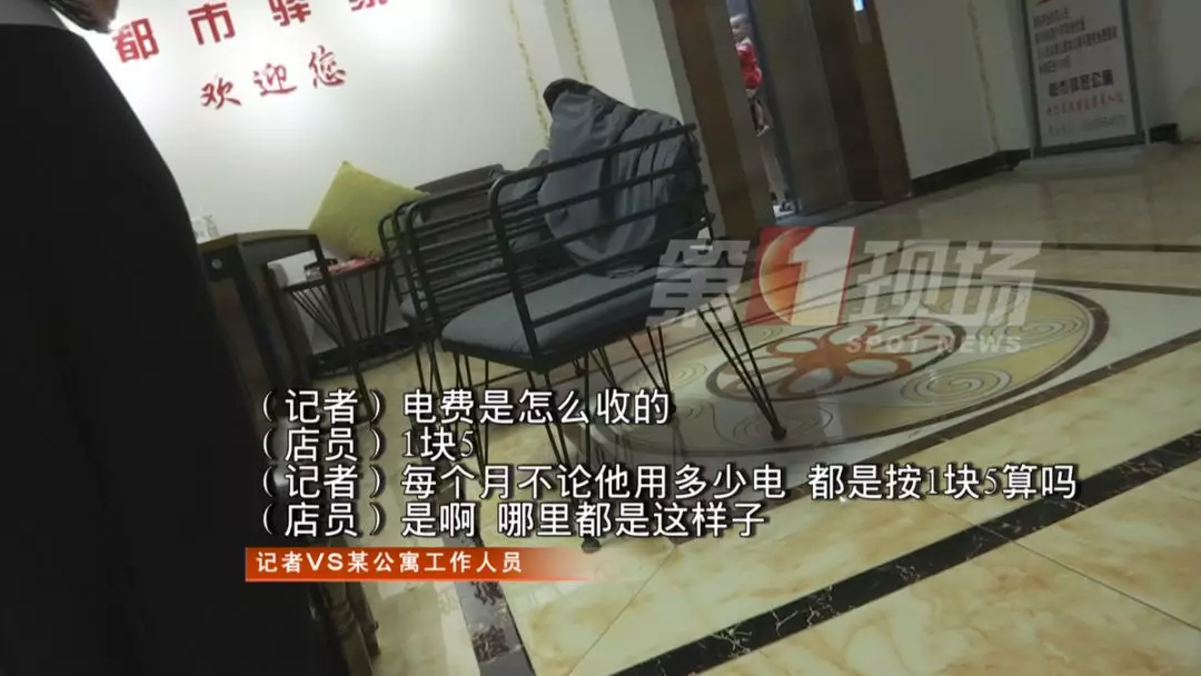 在記者走訪的另外一家改造公寓,提及電價(jià)收費(fèi)問(wèn)題,門店的工作人員也很直白,他們有自己的統(tǒng)一價(jià),無(wú)論用多少度電,都是按1塊5一度電計(jì)算。