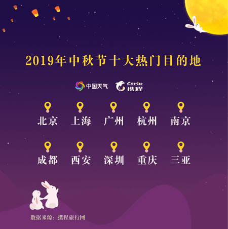 《報(bào)告》還顯示,中秋節(jié)出行高峰集中預(yù)計(jì)在放假前一天,即9月12日?!爱?dāng)天早晨6時(shí)出行人次便已開始劇增。”從主要出行目的地看,北京、上海、廣州、杭州、南京、成都、西安、深圳、重慶、三亞排名前列。另外,返程高峰將于9月15日上午7時(shí)開始。盡管今年中秋假期為周五至周日,拼假出游的需求仍然旺盛。節(jié)前請(qǐng)上1到2天年假,湊滿一個(gè)5天左右行程的長線游成為“拼假族”主流選擇。