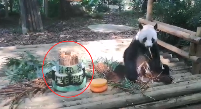 工作人員特地從四川空運了一批新鮮的方竹筍,還做了個生日蛋糕給他