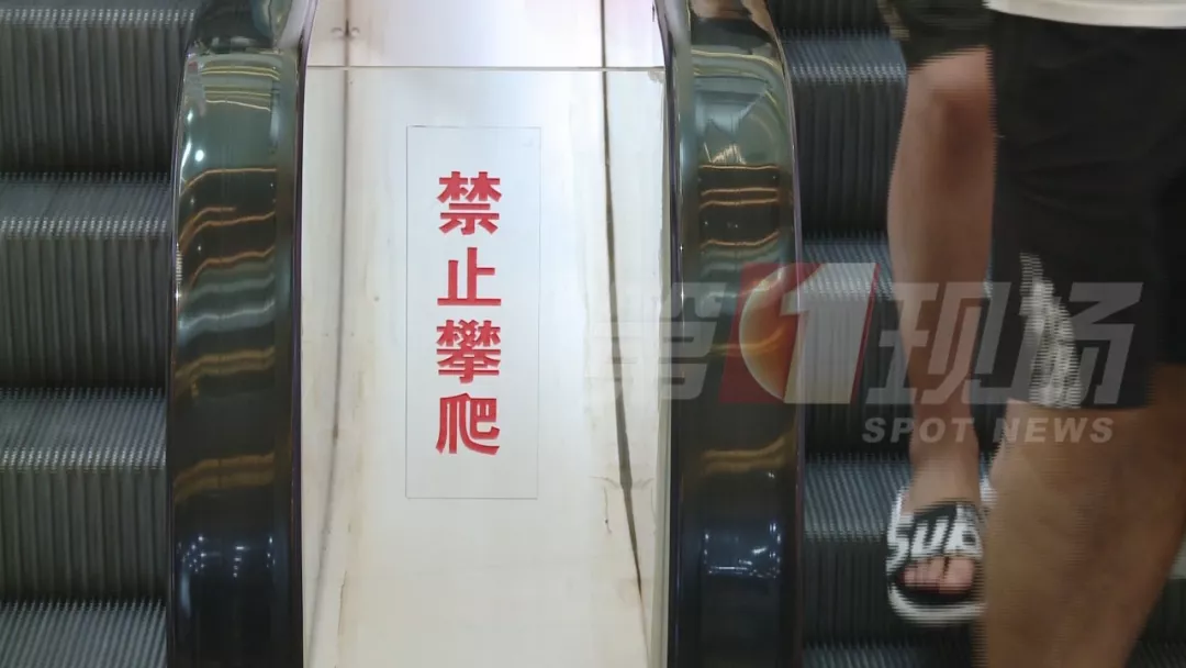 記者看到,這家商場已經(jīng)在手扶電梯處,設置了一些“禁止攀爬”,“小孩必須拉住”的安全警示標志。