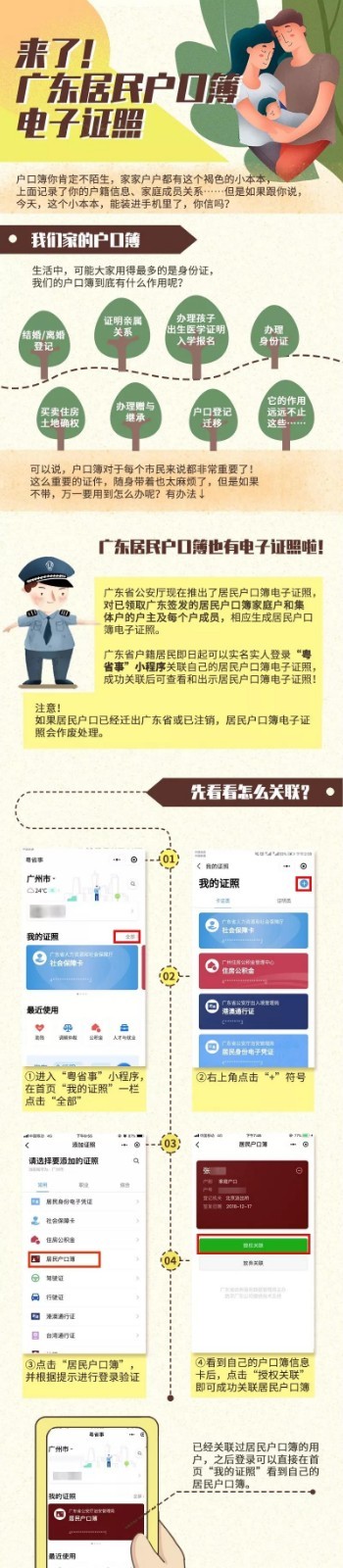 廣東省公安廳此次推出居民戶口簿電子證照,對于已經(jīng)領(lǐng)取廣東簽發(fā)的戶口簿家庭戶和集體戶的戶主及每個戶成員,都相應(yīng)生成居民戶口簿電子證照。需要注意的是,如果居民戶口已經(jīng)遷出廣東省或已注銷,居民戶口簿電子證照會作廢處理。