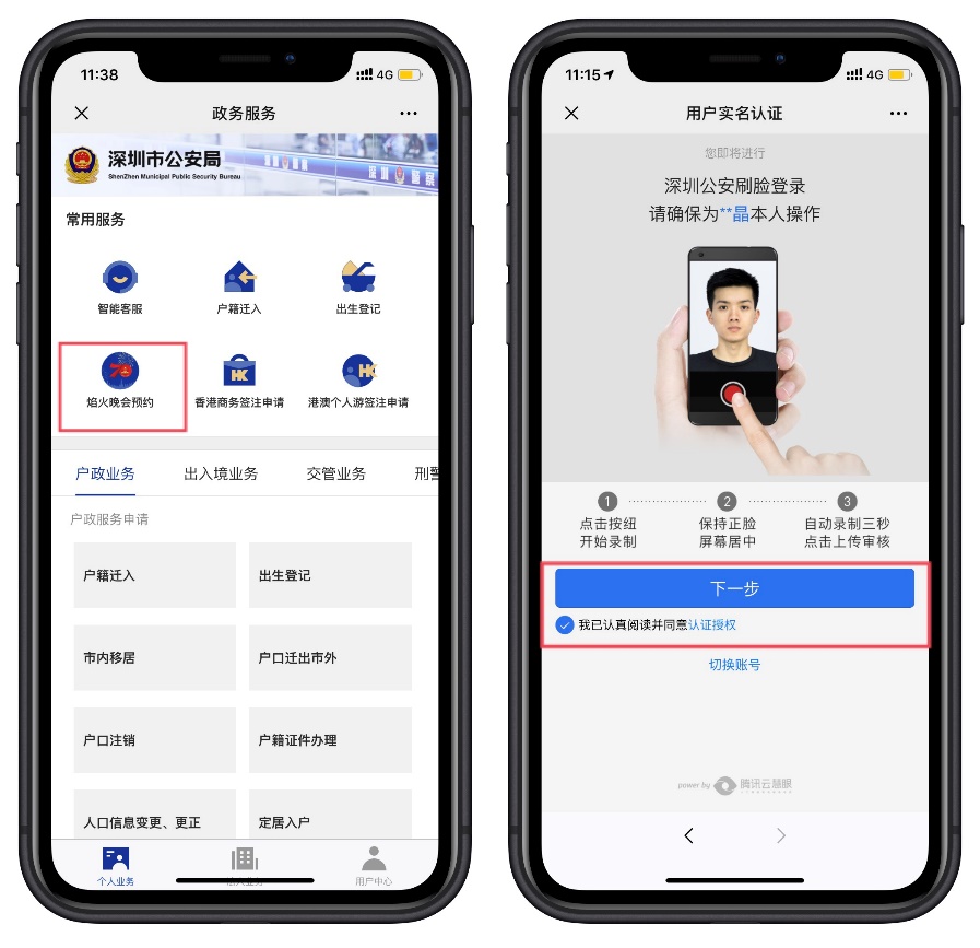 1.關注“深圳公安”微信公眾號,選擇“民生”欄,點擊焰火晚會預約,通過人臉認證后即可進入預約頁面,如下圖所示:
