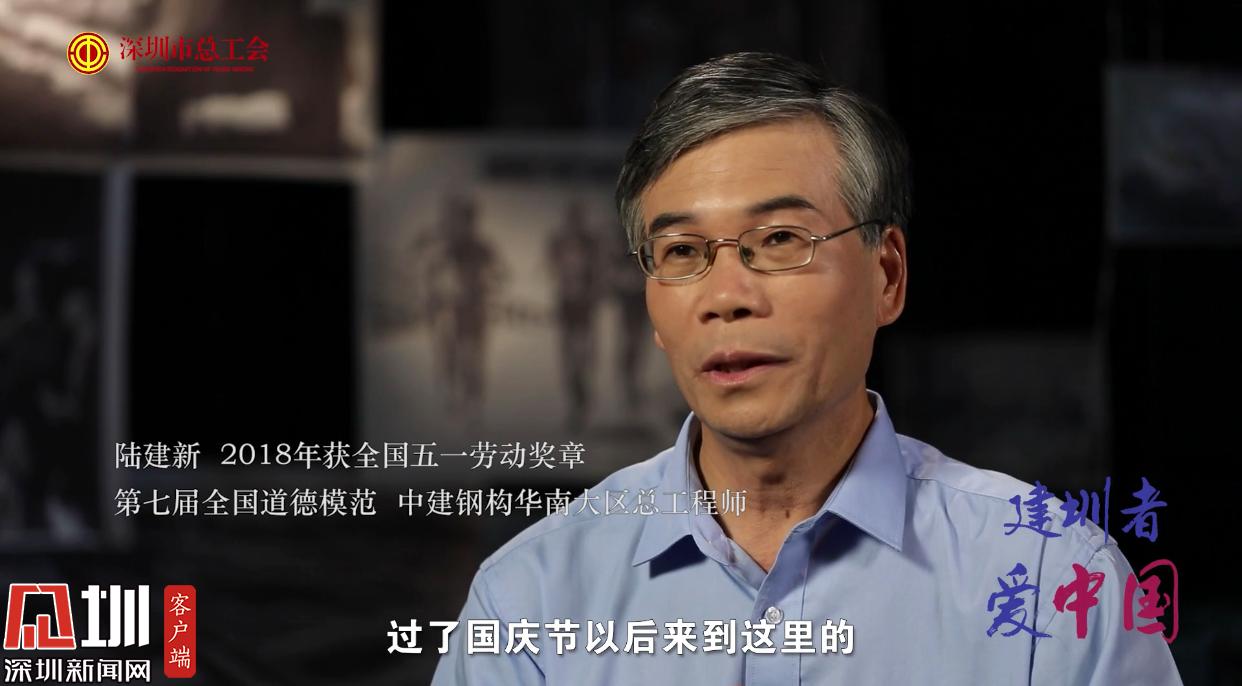 中建鋼構(gòu)華南大區(qū)總工程師陸建新于2018年獲得全國五一勞動獎?wù)拢彩堑谄邔萌珖赖履7丁?8歲就已來到深圳參與國貿(mào)大廈建造的他,談及在深圳奮斗的歷程時,幾乎是熱淚盈眶。