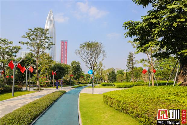 深圳人才公園內(nèi),國(guó)慶假日的氛圍濃厚。