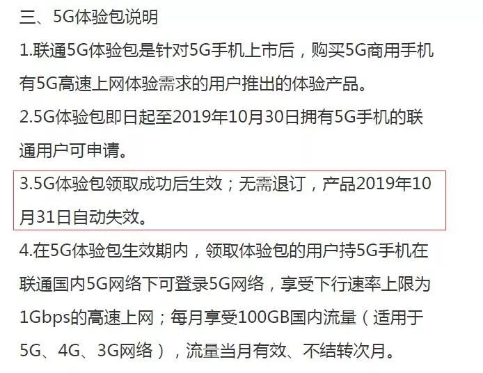 不過(guò)在中國(guó)聯(lián)通預(yù)約頁(yè)面顯示,"5G體驗(yàn)包領(lǐng)取成功后生效;無(wú)需退訂,產(chǎn)品2019年10月31日自動(dòng)失效。"所以5G套餐有可能是11月1日或10月底正式發(fā)售。