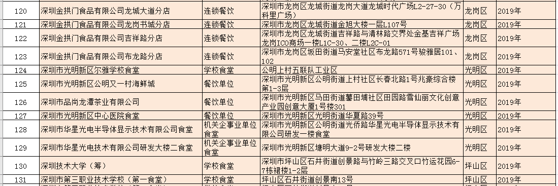 除了新增的A級餐廳外,該局還公布了降級餐廳名單:深圳市龍崗區(qū)龍崗街道培英幼兒園食堂因不符合餐飲服務食品安全量化等級A級要求予以降級。以及1家變更單位名稱的A級餐飲服務單位:原名稱為深圳市光明區(qū)培真幼兒園食堂的單位變更名稱為:深圳市光明區(qū)鳳凰街道嘉明幼兒園食堂。