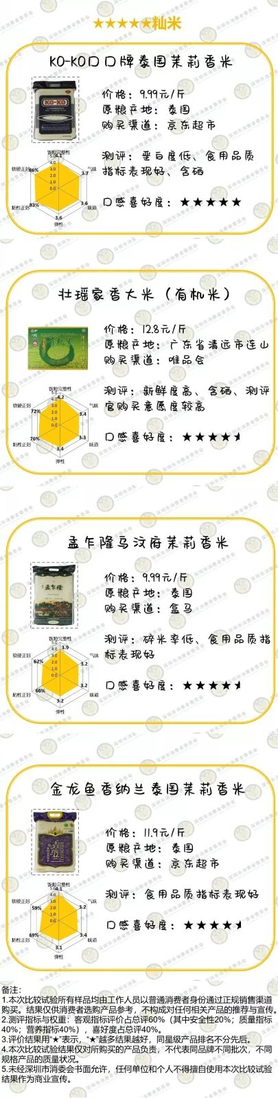 實驗室檢測的20款大米的4項重金屬均合格,100項農(nóng)藥殘留、黃曲霉毒素B?和石蠟均未檢出,結(jié)果表明,不必?fù)?dān)心大米的農(nóng)藥重金屬等安全問題,大家可以放心地吃!