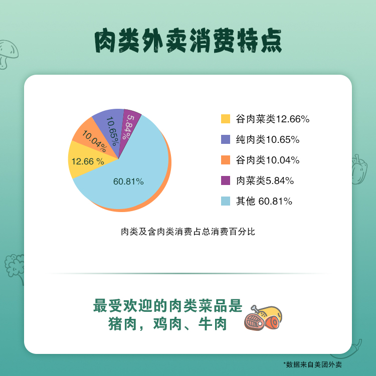 《我國10城市高頻外賣消費菜品膳食結構分析》報告研究指出十城市Top50消費菜品中,排第一的均為米飯,深圳居民對米飯及米制品的喜愛全國排名第一;十城中,油條在所有城市都進入了Top50;深圳和上海市民早餐最愛油條;珠海、哈爾濱居民尤其偏愛肉類食品,在訂制純肉類食品的頻次,哈爾濱城市排名最高,谷薯類食品對哈爾濱居民的吸引力比全國其他城市低;西安、北京更愛選擇主食和菜肴搭配,北京居民對肉類食物的興趣度比全國其他城市低。此外,整體來看,最受歡迎的肉類是豬肉、雞肉、牛肉,最受歡迎的蔬菜是白菜、包菜、西紅柿。