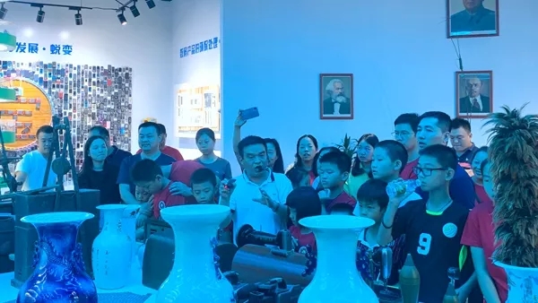 再生資源回收創(chuàng)意館也吸引了街道社區(qū)、環(huán)衛(wèi)工人、青少年等各界人士前來參觀。10月20日下午,來自光明區(qū)馬田街道的50余名退伍軍人及其子女來到寶安區(qū)松崗街道再生資源回收創(chuàng)意館參觀,對各類從未見過的電子產(chǎn)品好奇心滿滿,對每一樣展品都充滿興趣。他們興致勃勃地聽李一航講解電子產(chǎn)品的發(fā)展歷史與再生資源回收的重要意義,特別是當(dāng)他們在指導(dǎo)下使用民國時(shí)期的手搖式發(fā)電機(jī)成功為現(xiàn)在的音樂播放器供電時(shí),更是覺得不可思議,紛紛驚嘆“我們是不是穿越了?”