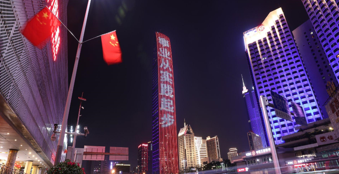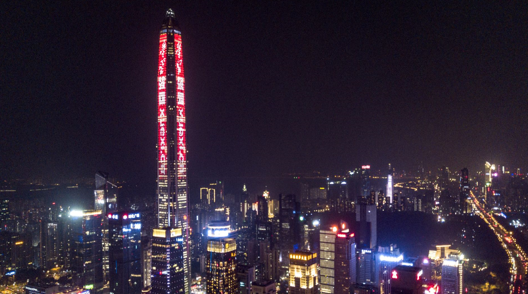 20日晚,京基100大廈和平安金融中心為“學(xué)習(xí)強(qiáng)國(guó)”“代言”