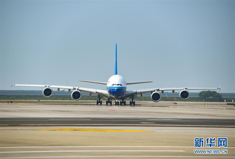 10月27日,南方航空空中客車(chē)A380客機(jī)抵達(dá)深圳機(jī)場(chǎng)。當(dāng)日下午,由全球最大寬體客機(jī)——空中客車(chē)A380執(zhí)飛的南航CZ3153次航班由深圳起飛前往北京,標(biāo)志著這款“空中巨無(wú)霸”機(jī)型重返深圳機(jī)場(chǎng)。南航曾在2014年5月開(kāi)始啟用A380執(zhí)飛京深航線,后因動(dòng)態(tài)運(yùn)力調(diào)配停飛。新華社記者毛思倩攝