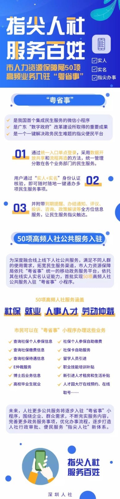 查社保、領(lǐng)補(bǔ)貼……都可手機(jī)辦!據(jù)深圳人社微信公號(hào)消息,有50項(xiàng)高頻人社業(yè)務(wù)已入駐“粵省事”平臺(tái)!快來(lái)看看都是什么業(yè)務(wù)吧