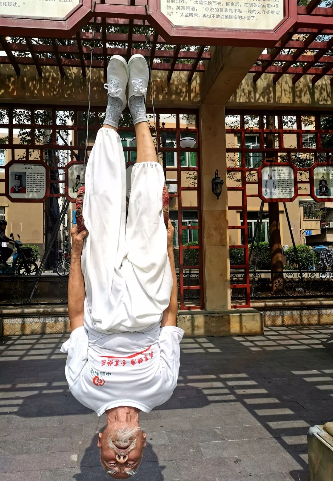 魏宗信還自信地表示:“我還能在吊環(huán)上倒立,在雙桿上玩翻身。”每天上午和下午加起來,他要運(yùn)動(dòng)兩三個(gè)小時(shí)。
