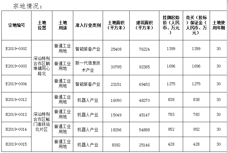 當(dāng)天,深圳市土地房產(chǎn)交易中心發(fā)布公告,受深圳市規(guī)劃和自然資源局深汕管理局委托,將以?huà)炫品绞焦_(kāi)出讓位于深汕特別合作區(qū)的E2019-0002等7宗地使用權(quán)。掛牌期自2019年11月25日起至2019年12月4日15時(shí)止。宗地情況如下: