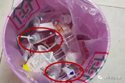 垃圾桶內(nèi)可見醫(yī)療廢物。