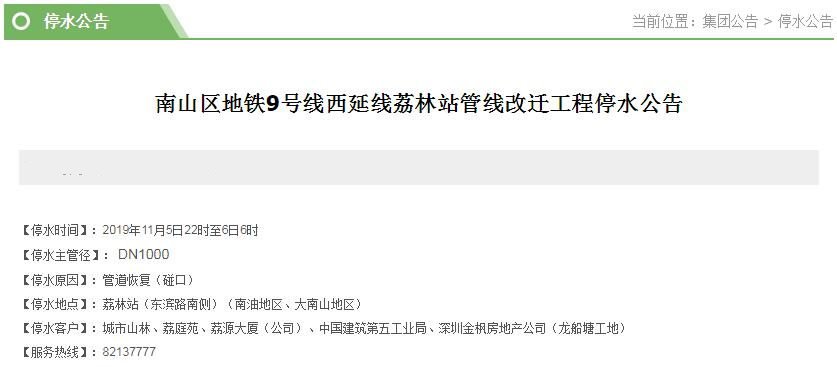 停水客戶:中國石油化工沙河西加油站、深圳市豐澤園實業(yè)有限公司、深圳市園林綠化管理所、蘇平、深圳市郁能投資有限公司、深圳市燃氣集團有限公司、深圳市白沙物流有限公司、深圳市糧食集團有限公司、深圳市康和盛實業(yè)有限公司、深圳市鹽業(yè)集團公司、消防站