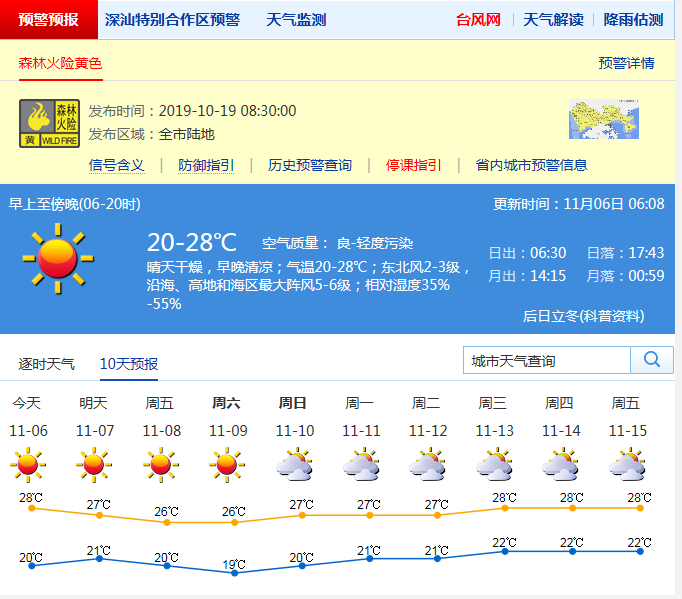 見圳客戶端·深圳新聞網(wǎng)2019年11月6日訊 近幾日,深圳天氣早晚清涼,持續(xù)干燥。據(jù)“深圳天氣”官方微博消息,今天(11月6日),深圳晴天干燥;氣溫20-28℃;東北風2-3級;相對濕度35%-55%。