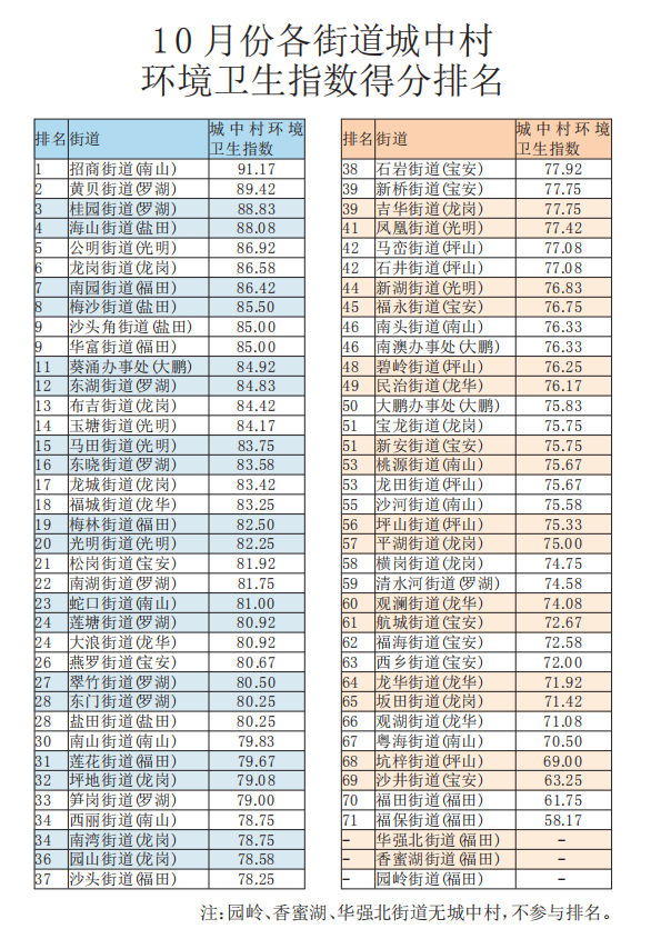 原標題:10月份深圳市環(huán)境衛(wèi)生指數(shù)測評成績發(fā)布