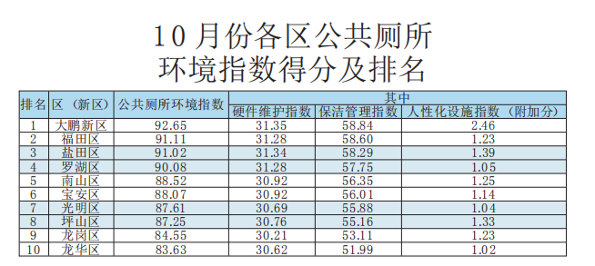 龍華、龍崗兩區(qū)已多次在公廁環(huán)境指數(shù)測評中排名墊底,應當引起重視,學習先進,加強“廁所革命”力度進度,全面消除轄區(qū)公廁短板。