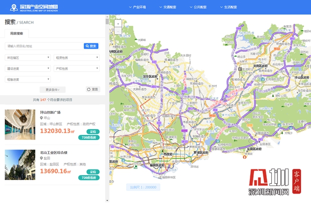 深圳產(chǎn)業(yè)空間地圖相當(dāng)直觀實(shí)用,哪個區(qū)有合適的產(chǎn)業(yè)用房房源一目了然。