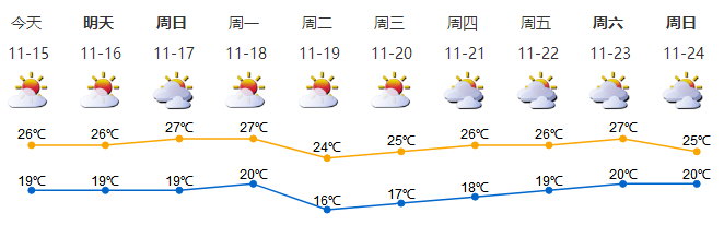 我市晴天間多云,空氣干燥;氣溫19-26℃;東北風2-3級;相對濕度40%-85%。