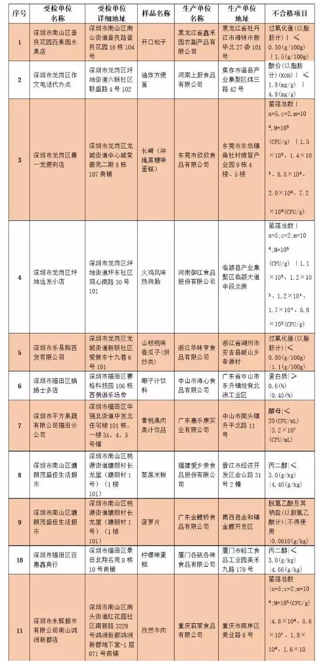 見圳客戶端·深圳新聞網(wǎng)2019年11月18日訊 蛋糕、瓜子、果汁……這些零食你愛買嗎?要當(dāng)心了哦!11月16日,記者從市監(jiān)相關(guān)部門獲悉,深圳最新零食抽檢結(jié)果出爐,本次共抽檢了501批次,其中不合格抽樣樣品11批次,不合格的項目主要集中在菌落總數(shù)等。