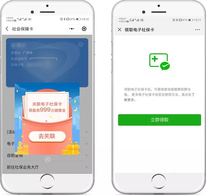關(guān)聯(lián)完成后,點(diǎn)擊彈窗領(lǐng)取電子社保卡,在電子社??I(lǐng)取頁(yè)面點(diǎn)擊“立即領(lǐng)取”。