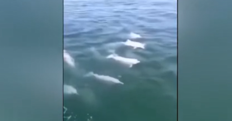 最近,白海豚又來深圳打卡了,它們在水中嬉戲,可快活了