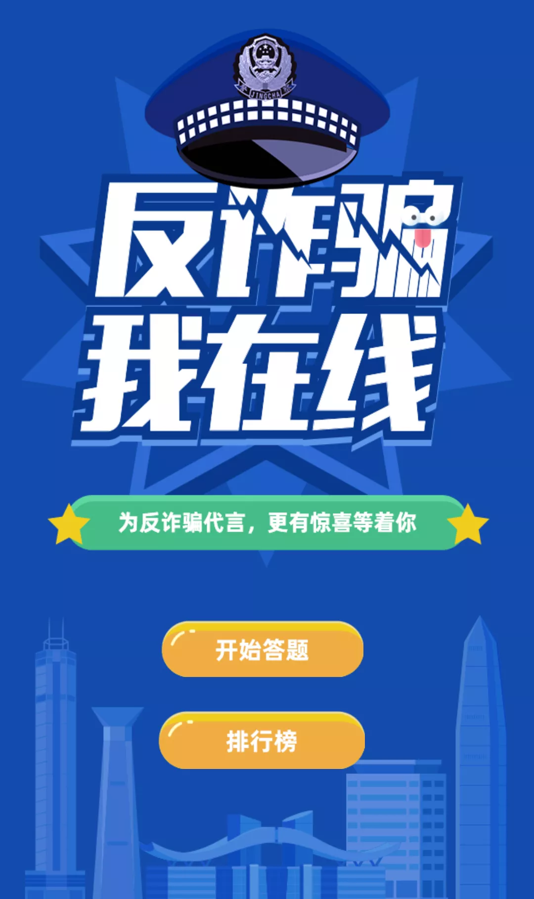 當(dāng)天“反詐騙我在線”線上答題活動正式推出,掃一掃二維碼,關(guān)注“福田警察”微信公眾號,即可參與答題,答對3題并分享反詐代言框到朋友圈,有機(jī)會獲得紅包獎勵。