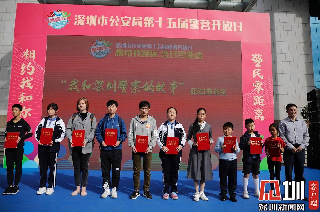 獲得“我和深圳警察的故事”征文比賽其他獎(jiǎng)項(xiàng)的小朋友們上臺(tái)領(lǐng)獎(jiǎng)。