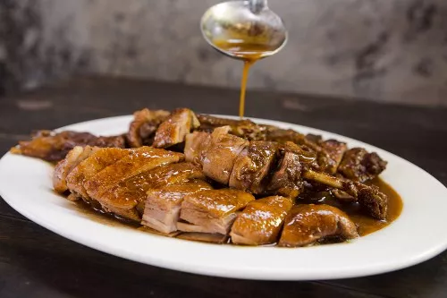 不知是哪位調(diào)皮的美食家曾經(jīng)說過,沒有一只鴨子能活著走出南京,這句話放在深圳同樣適用!燒臘作為廣府菜中閃亮的明星,占據(jù)了廣府菜的半壁江山,在深圳便能深刻體會(huì)。深圳的燒臘店遍地開花,燒鴨燒鵝隨處可見,光明乳鴿更是赫赫有名。在深圳,從巷子里的街頭小店,到攘來熙往的商場,再到小有名氣的高檔餐廳,都能看到燒臘的影子,可見燒臘之于深圳人的地位,依舊是不可撼動(dòng)的存在。