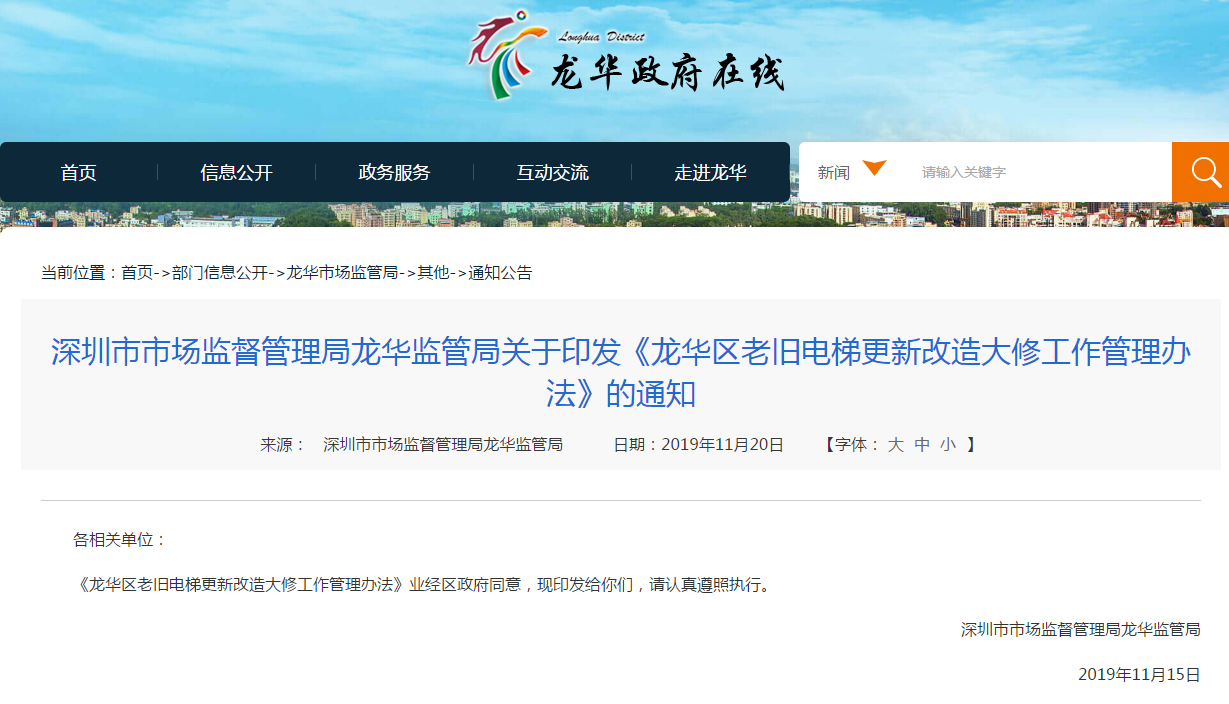 老舊電梯更新每臺(tái)補(bǔ)貼最高20萬!符合條件的單位可向深圳市市場(chǎng)監(jiān)督管理局龍華監(jiān)管局聯(lián)系報(bào)名,報(bào)名截止時(shí)間為:2019年12月13日。