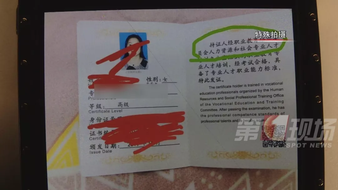 在詢問(wèn)證書(shū)是哪里頒發(fā)時(shí),工作人員說(shuō),國(guó)內(nèi)其他城市這類證書(shū)分初級(jí)中級(jí)高級(jí),要分別交錢考,她們一步到位,直接發(fā)高級(jí)證書(shū),全國(guó)通用。