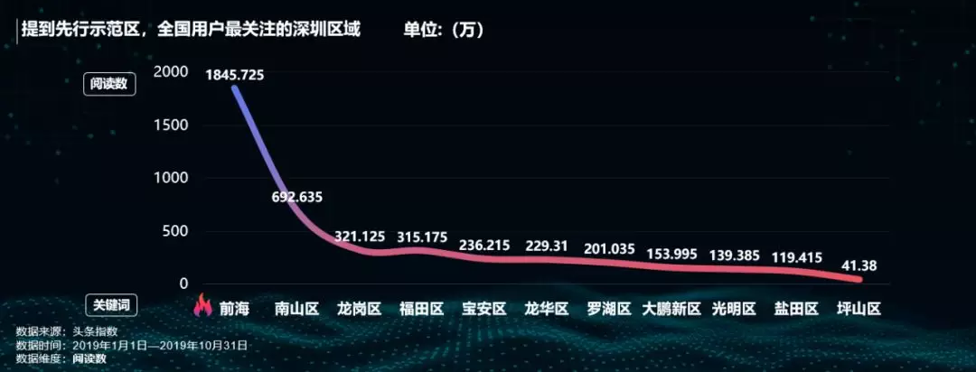 提到先行示范區(qū),全國網友最關注的深圳區(qū)域是前海和南山區(qū)。作為特區(qū)中的特區(qū),前海將奮力成為先行示范區(qū)核心引擎區(qū)域,關注度遙遙領先。而被譽為“中國硅谷”的南山,在科技大熱的今年,關注度僅次于前海。