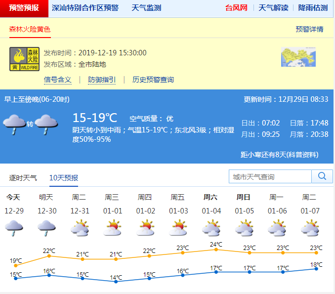 見圳客戶端·深圳新聞網(wǎng)2019年12月29日訊 大雨和冷空氣在年底前在深圳最后一次沖業(yè)績(jī)來(lái)了!據(jù)深圳市氣象臺(tái)29日凌晨4:57發(fā)布的最新預(yù)報(bào),今天周日有中到大雨,伴有零散雷暴,氣溫也將是近幾天的最低,為15-19℃。