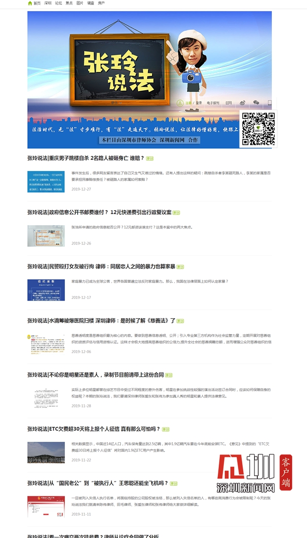 見圳客戶端·深圳新聞網2019年12月30日訊(見圳客戶端、深圳新聞網記者 張玲)要和2019年說再見了。在過去的一年里,深圳新聞網和深圳市律師協(xié)會合辦的《張玲說法》欄目共發(fā)布46篇報道(包括本篇稿子),是時候做個年終盤點了。