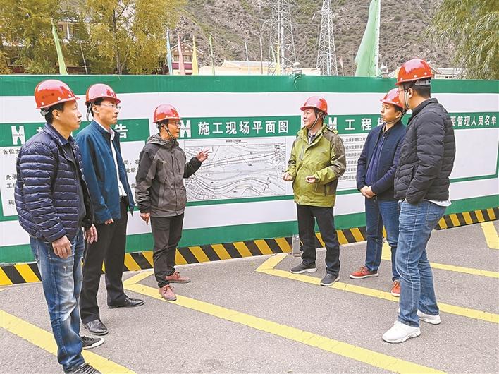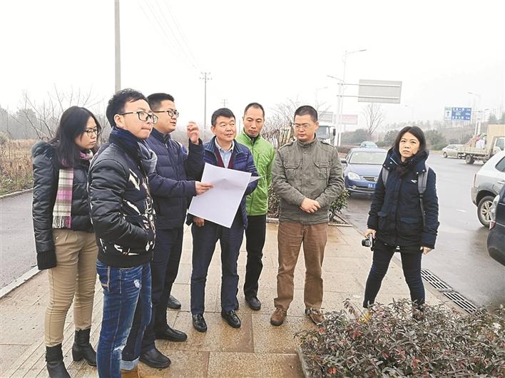 2017年12月蔡明(左四)在武漢高新大道現(xiàn)場查看工程進度。