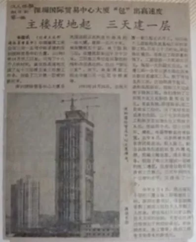 不少人對深圳的第一印象是來自一條新聞:深圳國貿(mào)大廈工程,取得了“三天一層樓”的速度。