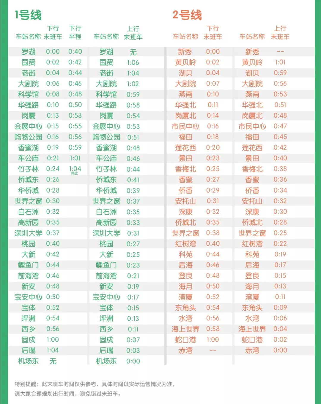 春運期間末班車時刻表