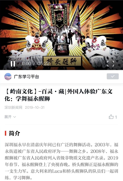 作品鏈接:IN視頻|外國人體驗廣東文化:學(xué)舞福海醒獅