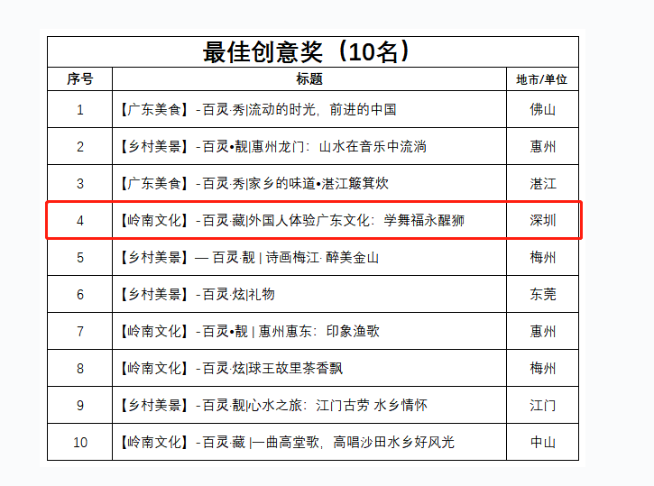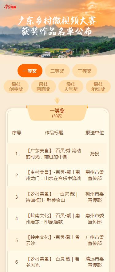 廣東鄉(xiāng)村微視頻大賽一等獎、最佳創(chuàng)意獎獲獎名單